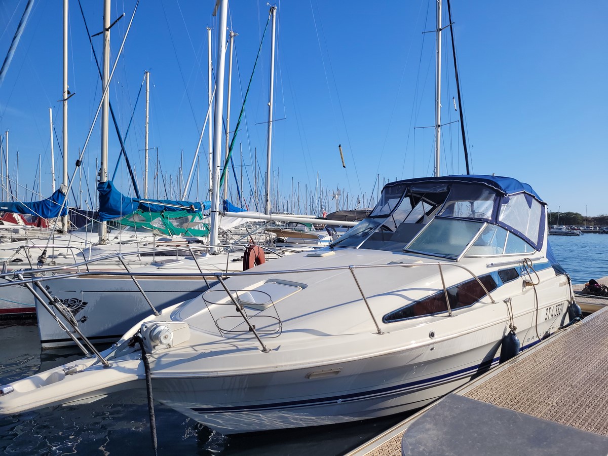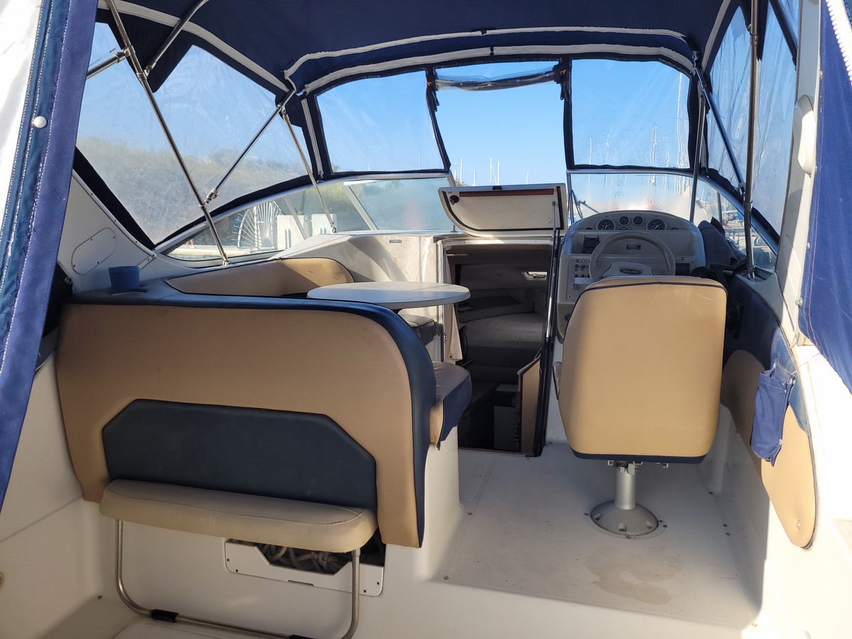 Observations : Vedette avec beau volume, Intérieur lumineux, Confortable en mer et au port, Entretien moteur par professionnelle, Place port au Cap d’Agde