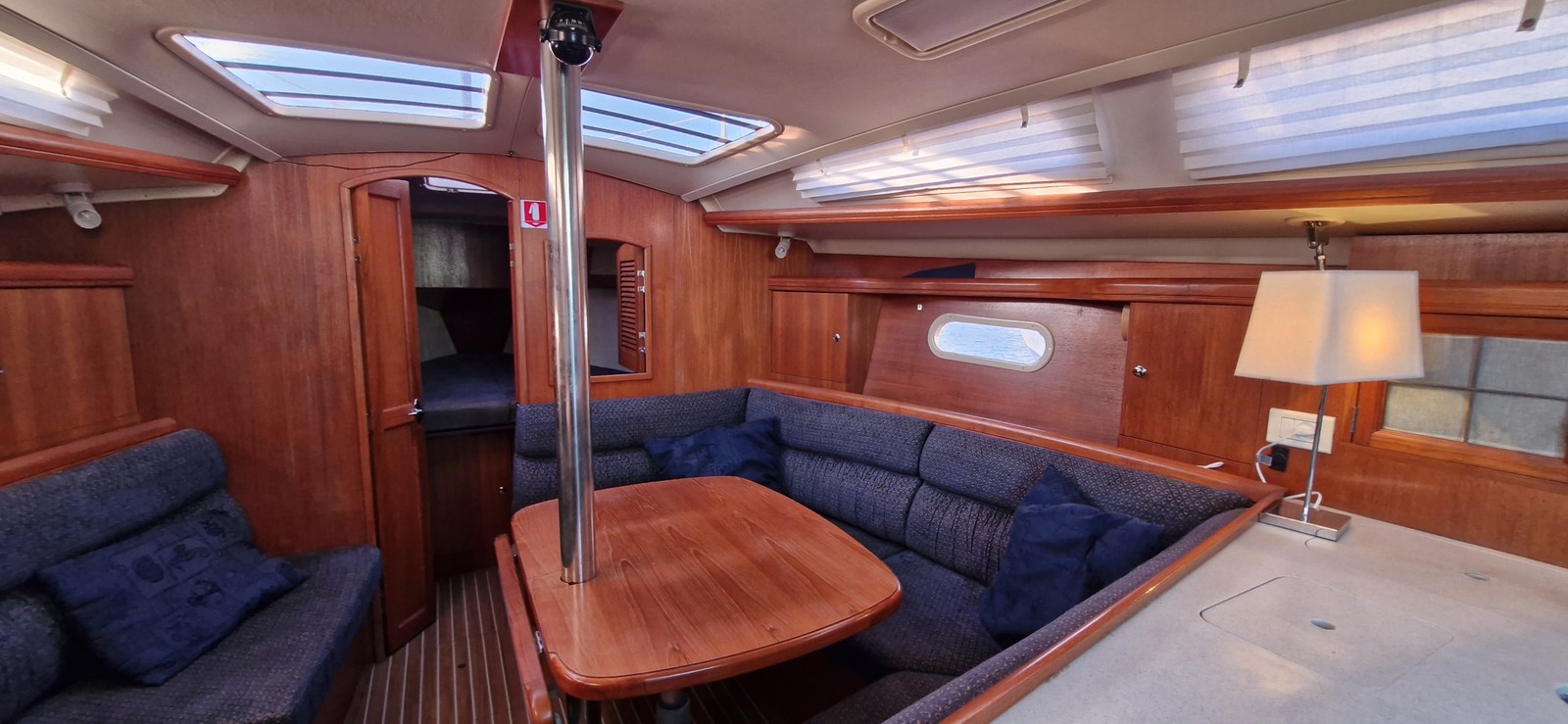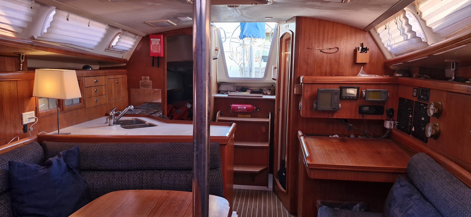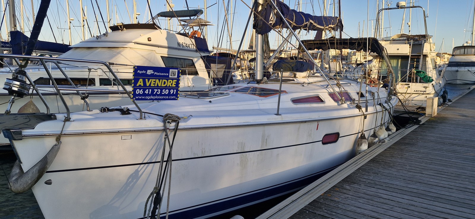 Voilier avec beau volume dans sa catégorie, Entretien moteur par professionnelle tous les ans, Prévoir remplacement des drisses, Révision des voiles et lazy bag, Cabine arrière exceptionnelle pour un 36 pieds, Cockpit confortable avec jupe arrière, Intérieur en très bon état avec belle boiserie, Place de port au Cap d’Agde .
